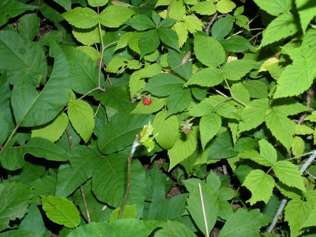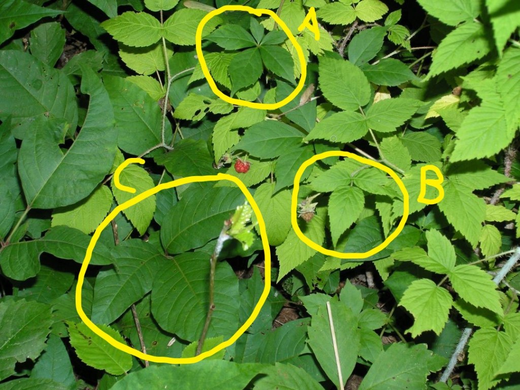B) Wild raspberry – The toothed margins of wild raspberry should be an immediate giveaway that this is not poison ivy.