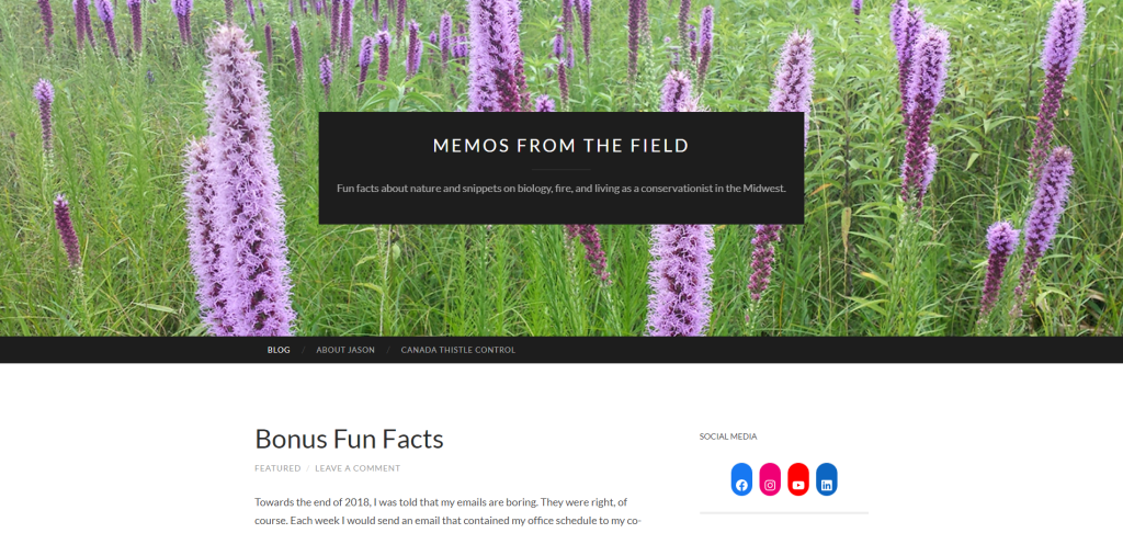 My personal website, which you are on right now at this very moment. It isn’t anything fancy and that’s by design. I created it using WordPress and it’s a blog first and foremost. I wanted it to be simple, casual, and easy to digest. I use it to store my fun facts and to supplement my outreach efforts and conversations I have with landowners.